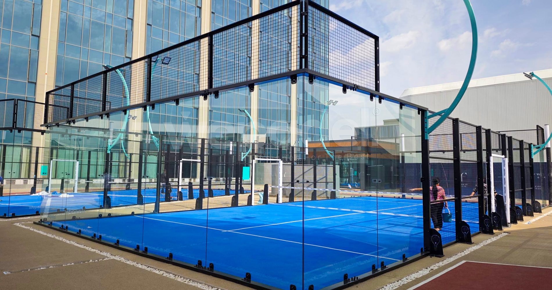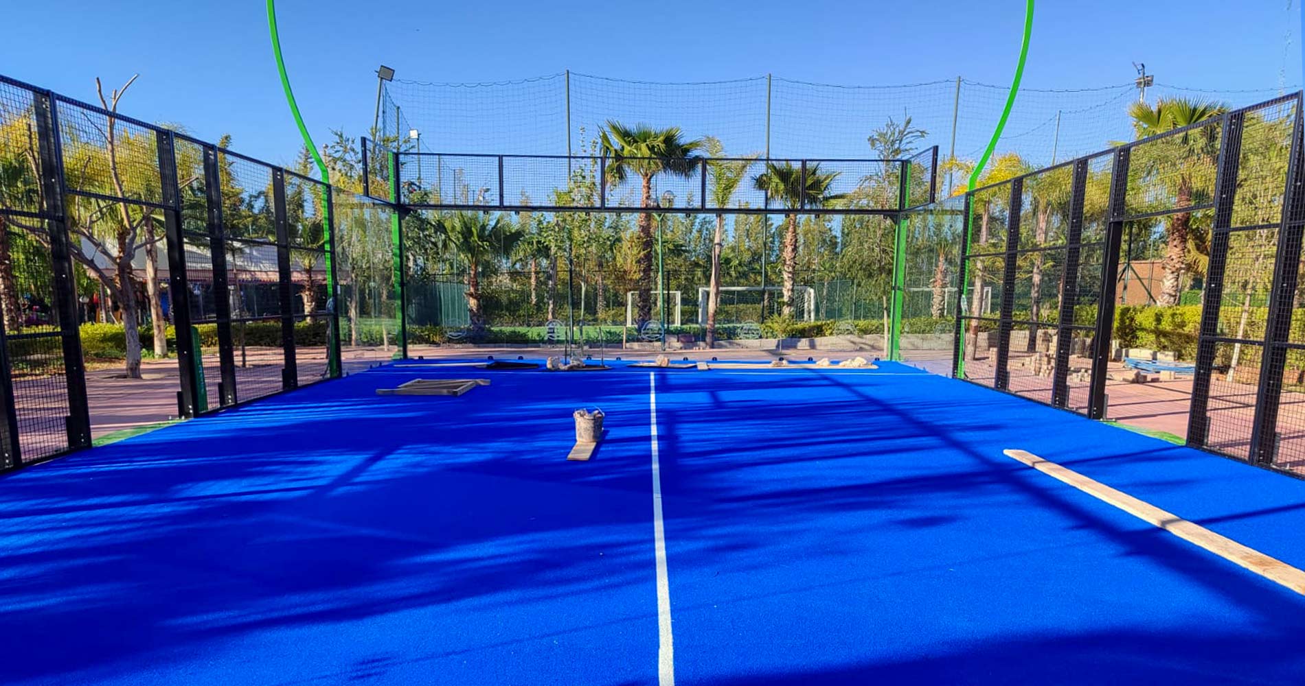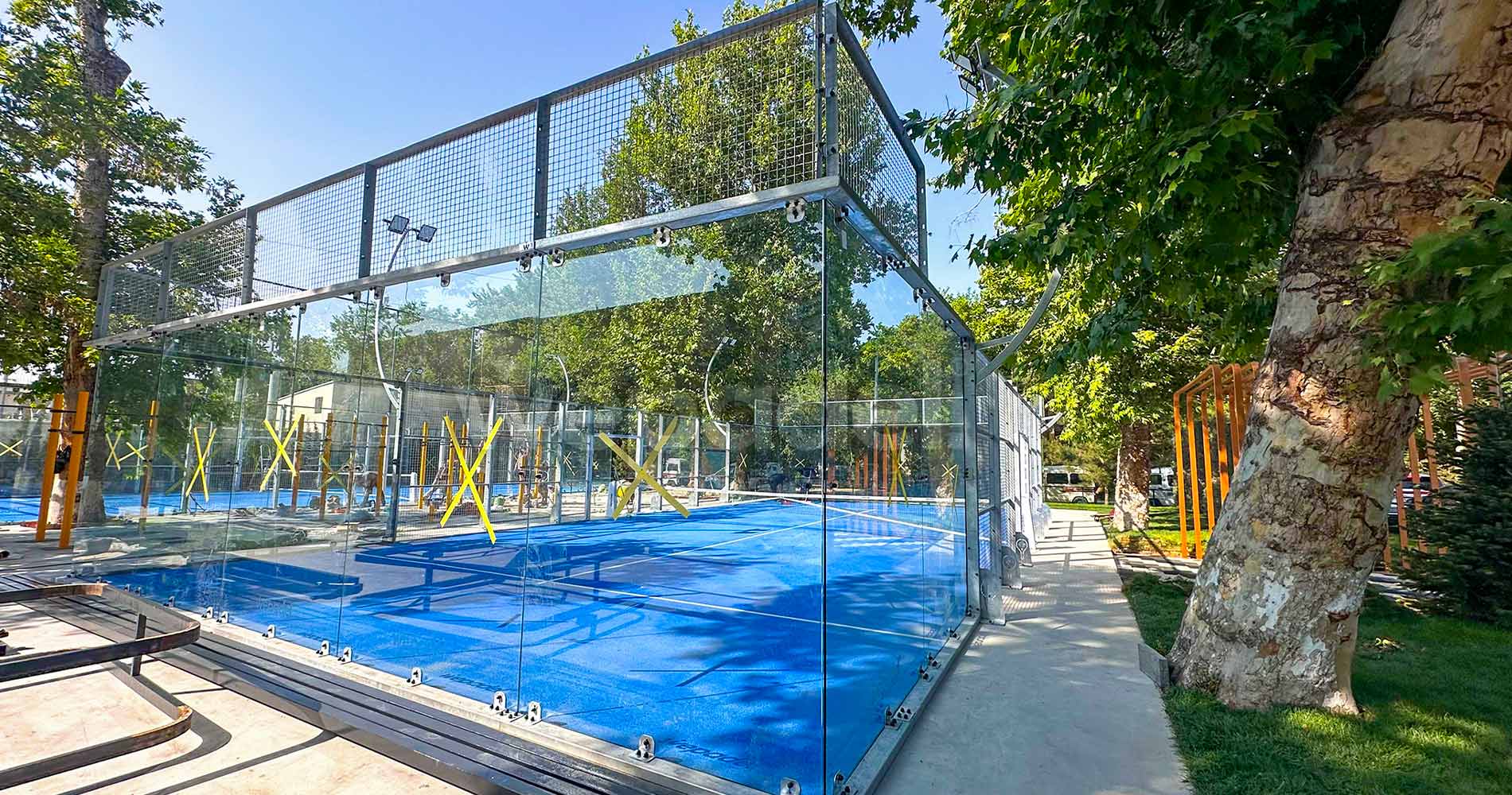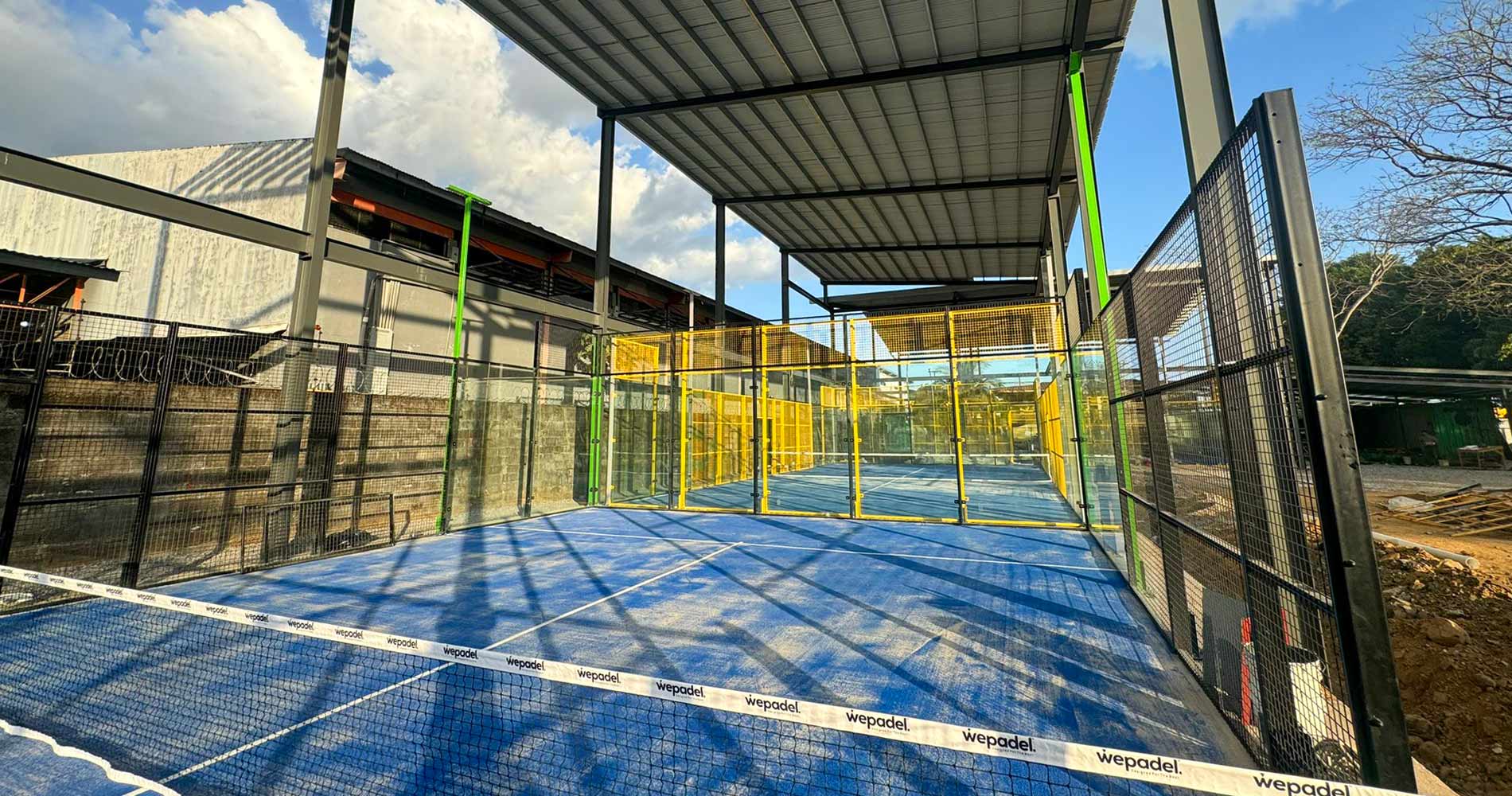 AsWePadel, we have successfully completed the construction of 1 Origin Discover Padel Court in Cameroon. In this project, yellow steel posts and blue padel turf were combined to create a modern, dynamic design with high visibility. This contrasting color combination gives the court a strong identity while visually enhancing the user experience.
